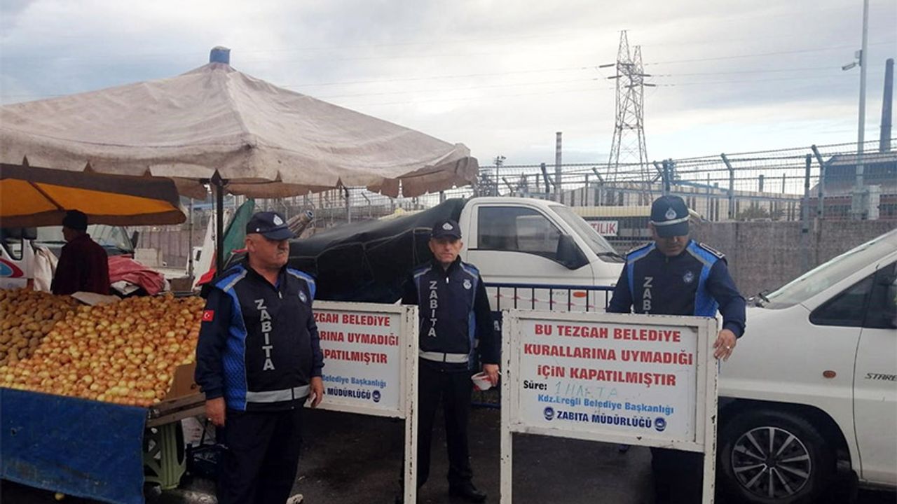 Kdz. Ereğli Belediyesi Zabıta Müdürlüğü ekiplerinin incelemesi sonrası, müşteriye kaba davranan ve hakarette bulunan 2 tezgah encümen kararıyla 1 hafta süreyle kapatıldı.